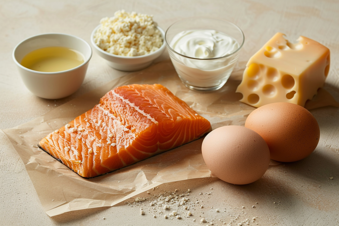 B12-reiche Ernährung: Fleisch, Fisch, Eier und Milchprodukte sind gute Quellen.